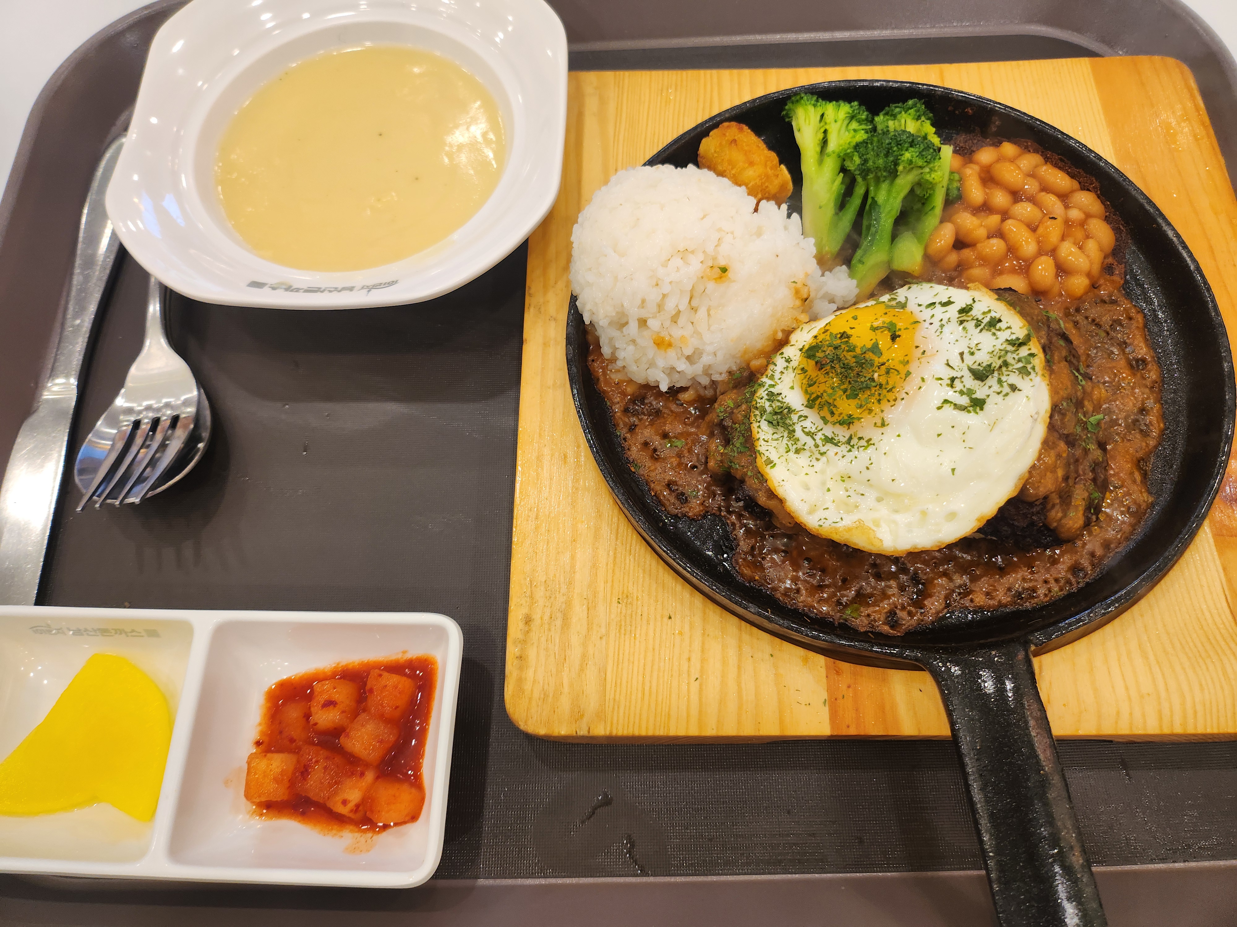 저희는 치즈돈가스와 함박스테이크를 주문했어요.